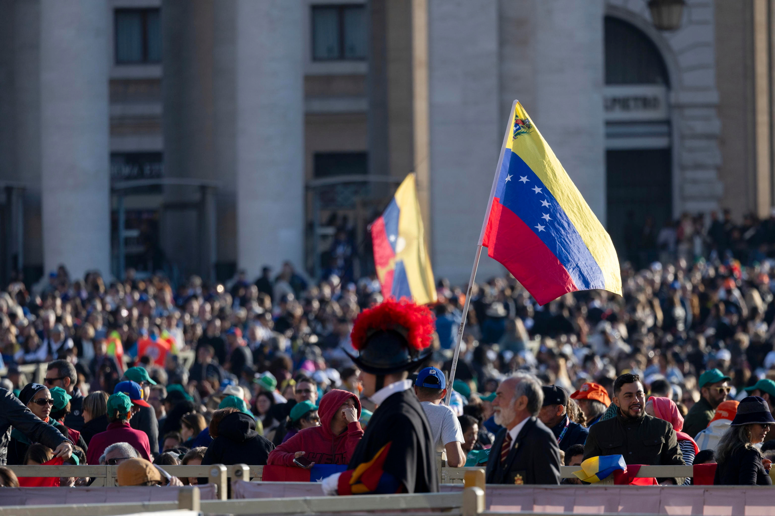 Faithful with Venezuelan flags at the canonization ceremony at the Vatican. Photo: EFE