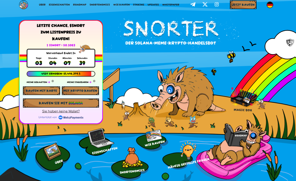 L'intérêt est immense. Plus de 5,4 millions de dollars ont déjà été investis dans la phase de prévente. Snorter développe un robot de trading Telegram qui identifie instantanément les nouvelles cryptomonnaies mèmes et les filtre automatiquement pour les contrats intelligents sécurisés. Grâce à la machine virtuelle Solana, le robot est nettement plus rapide et moins cher que de nombreuses alternatives basées sur Ethereum. Un autre avantage réside dans les faibles frais de seulement 0,85 % pour les détenteurs de jetons, associés à un rendement annuel de staking de 102 %. Les analystes comparent déjà Snorter au succès de Banana Gun, dont le jeton a été multiplié par 40 à 200 après son lancement.