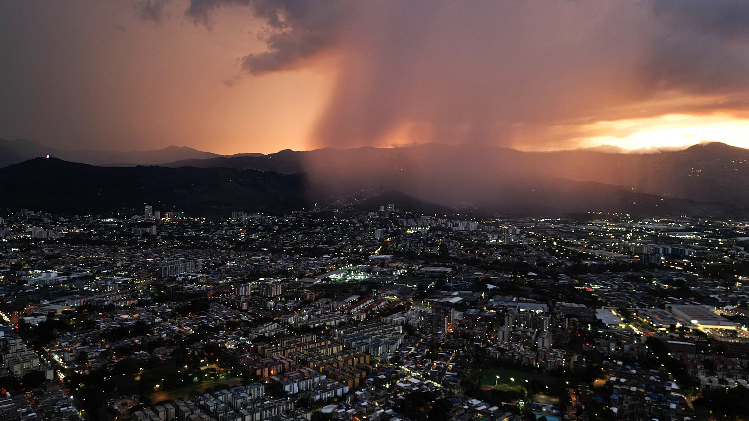 Şehrin güneyinde ve merkezinin bir kısmında yağmur yağdığını gösteren Cali'nin panoramik görüntüsü. Fotoğraf: Juan Pablo Rueda / EL TIEMPO