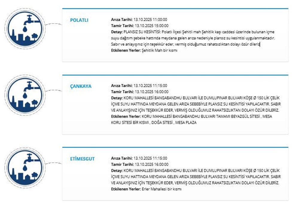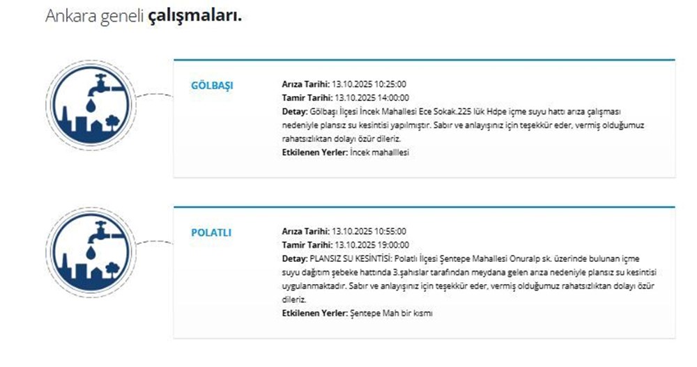 Water outages in 4 districts of Ankara (Gölbaşı, Polatlı, Çankaya, Etimesgut): When will the water be restored?