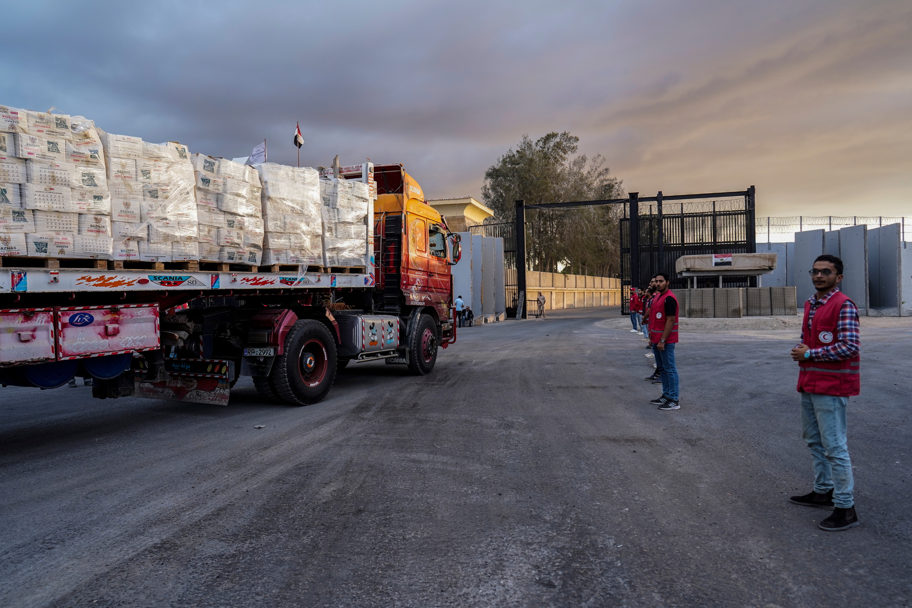 Палестинцы забирают гуманитарную помощь из грузовика, прибывшего в Хан-Юнис, Газа. Фото: EFE