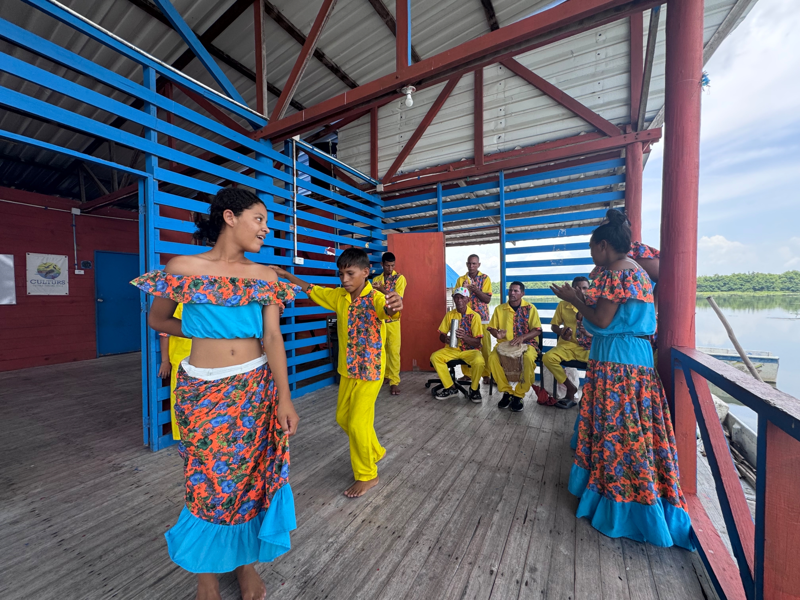 «Сегодня я с удовольствием представляю вам Combo Buenavistero. Мы, как группа, существуем уже около семи лет. Мы появились на свет в результате проекта DLS, который появился в нашем сообществе в 2019 году и целью которого было укрепление местной культуры. Раньше традиционные танцы и представления исполнялись только по особым случаям — дням рождения и праздникам, — поскольку в то время в наших общинах не было электричества. Часто можно было увидеть так называемые чёрные танцы — яркое проявление нашего африканского наследия», — объясняет Мария, лидер группы.