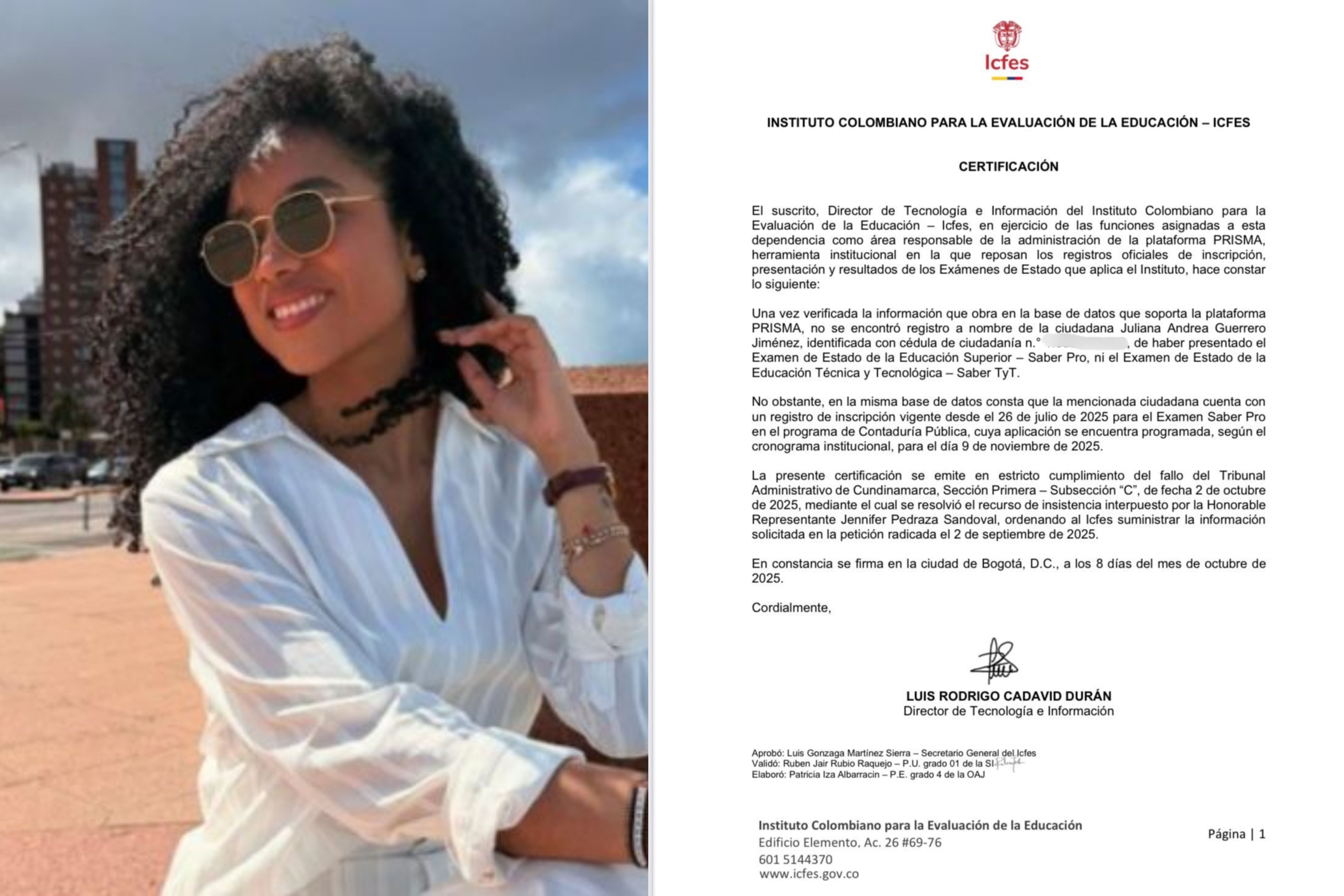 ICFES, Juliana Guerrero'nun sınavlara katılmadığını doğruladı. Fotoğraf: Sosyal medya